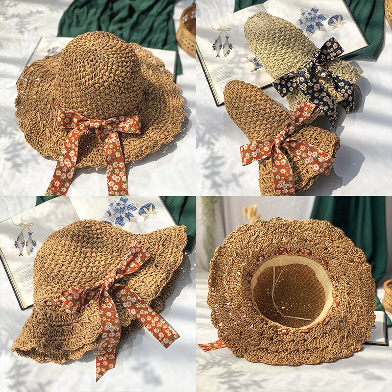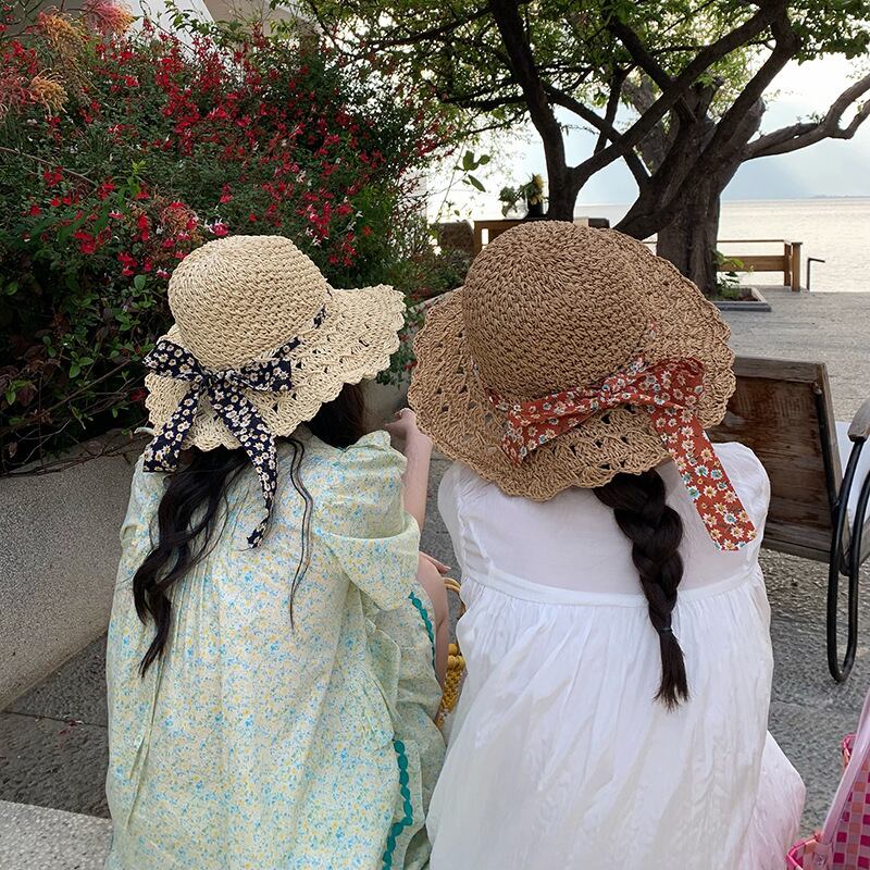 ★025夏新作 麦わら帽子 蝶結びリボン付き 小顔効果 草編み 紫外線対策 UVカット