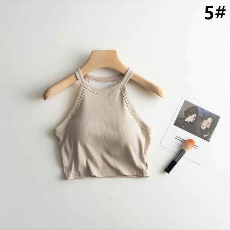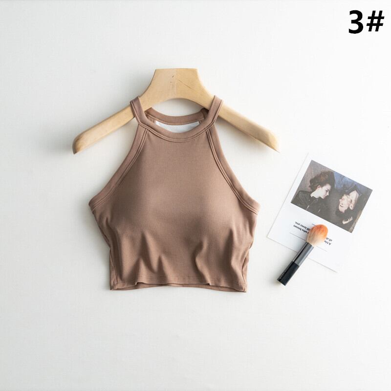 全5色 カップ付きインナー スポーツインナー ブラタンク ショート丈 無地 バストパッド付き レディース