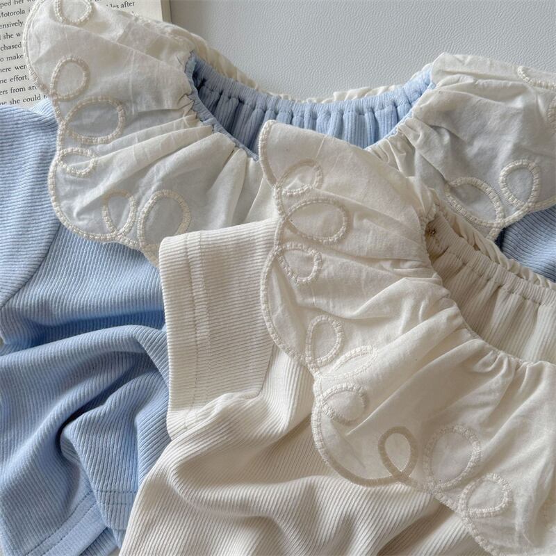 ins 夏新作 ベビー服 レース ラッフル襟 半袖 Tシャツ カジュアル トップス 可愛い 女児 子供服