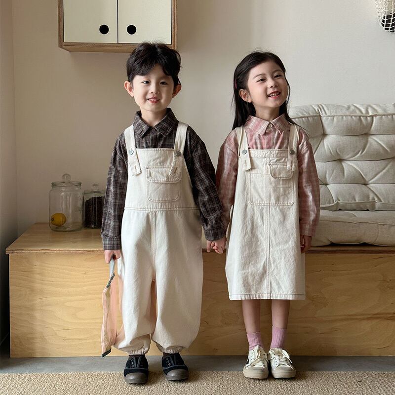 とてもおしゃれな2025秋新規の☆QQMM子供用 オーバーオール+ワンピースセットアップ 兄妹コーデが入荷致しました!可愛らしいデザインのこのセットアップは、兄妹でお揃いにできる特別な一着です。柔らかく、肌触りの良い素材が、快適な着心地を提供し、遊び心満載の秋のシーンにぴったりのコーディネートを楽しめます。元気な子供たちにおすすめの一着です!