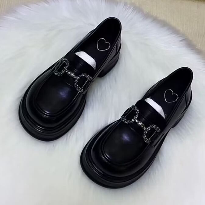 このローファー パンプスは、光沢感が魅力的でありながら、厚底仕様で美脚効果も抜群です!カジュアルな日常使いから特別な外出まで、幅広いシーンで活躍します。ぜひ、あなたのスタイルに取り入れてみてください。