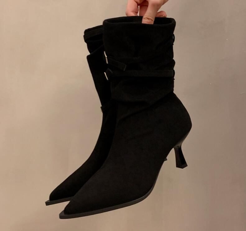 このショートブーツは、尖りデザインが魅力です!ハイヒールの効果で足を美しく見せてくれ、スタイルアップが期待できます。どんなシーンでも活躍する万能アイテムとして、ぜひあなたのスタイルに取り入れてみてください。